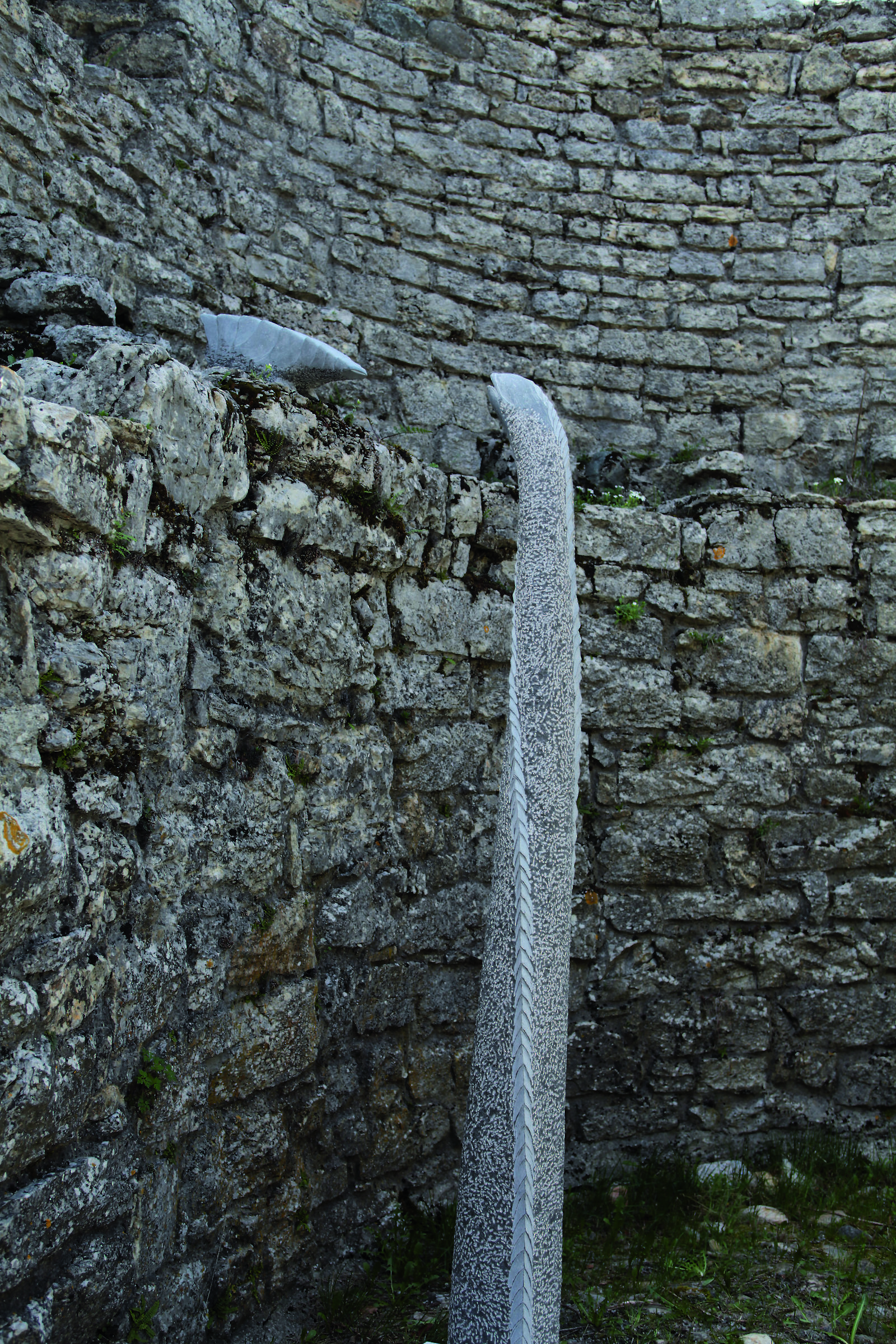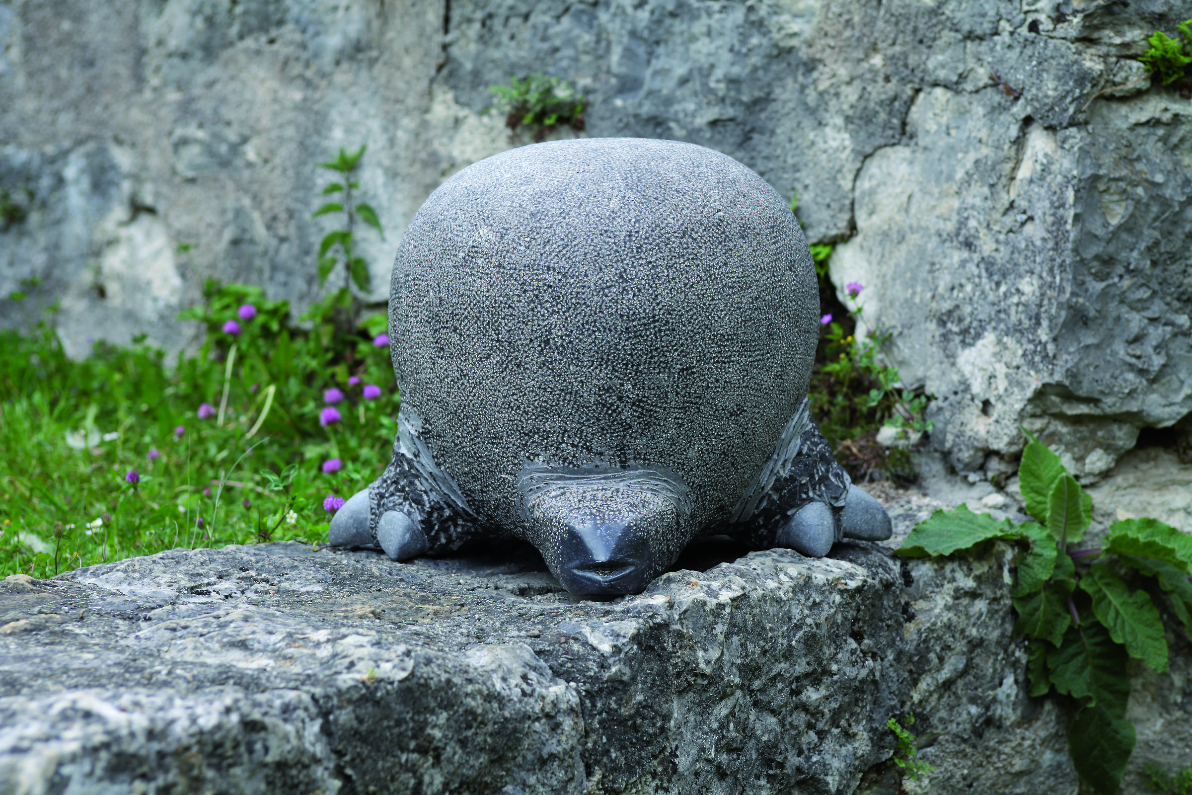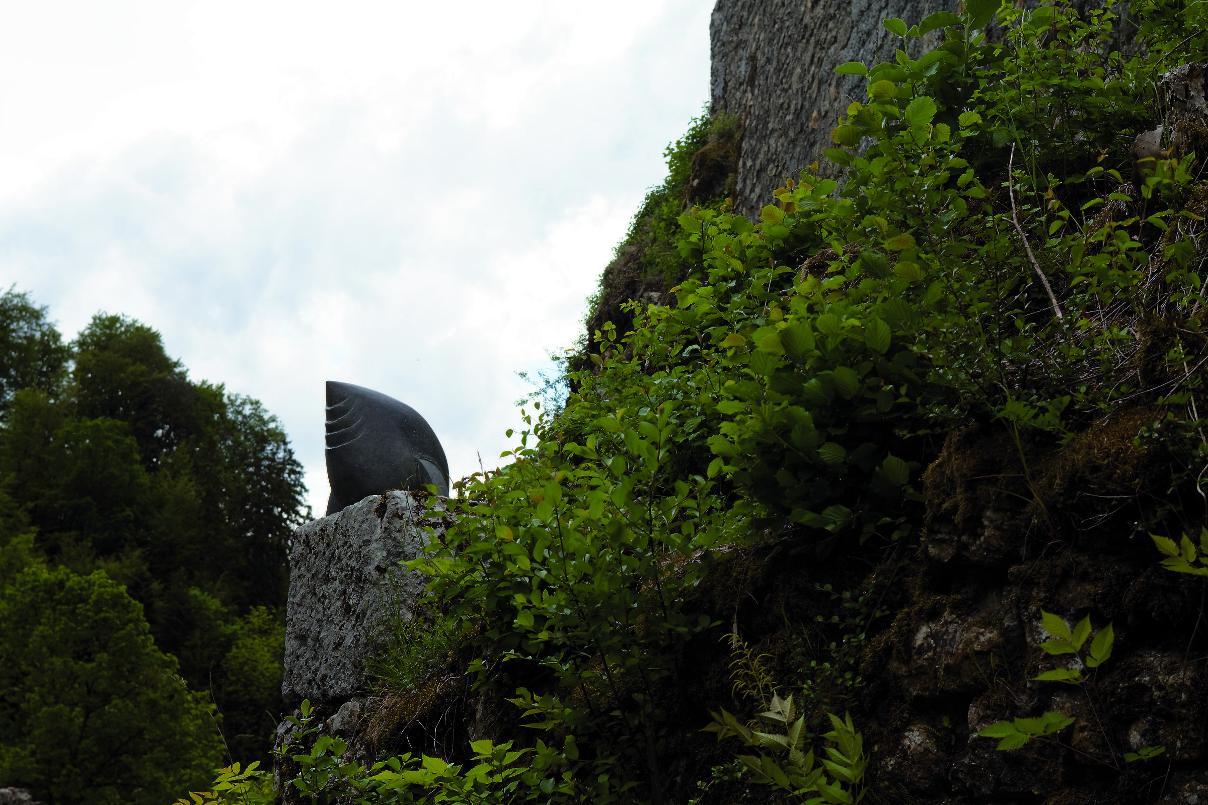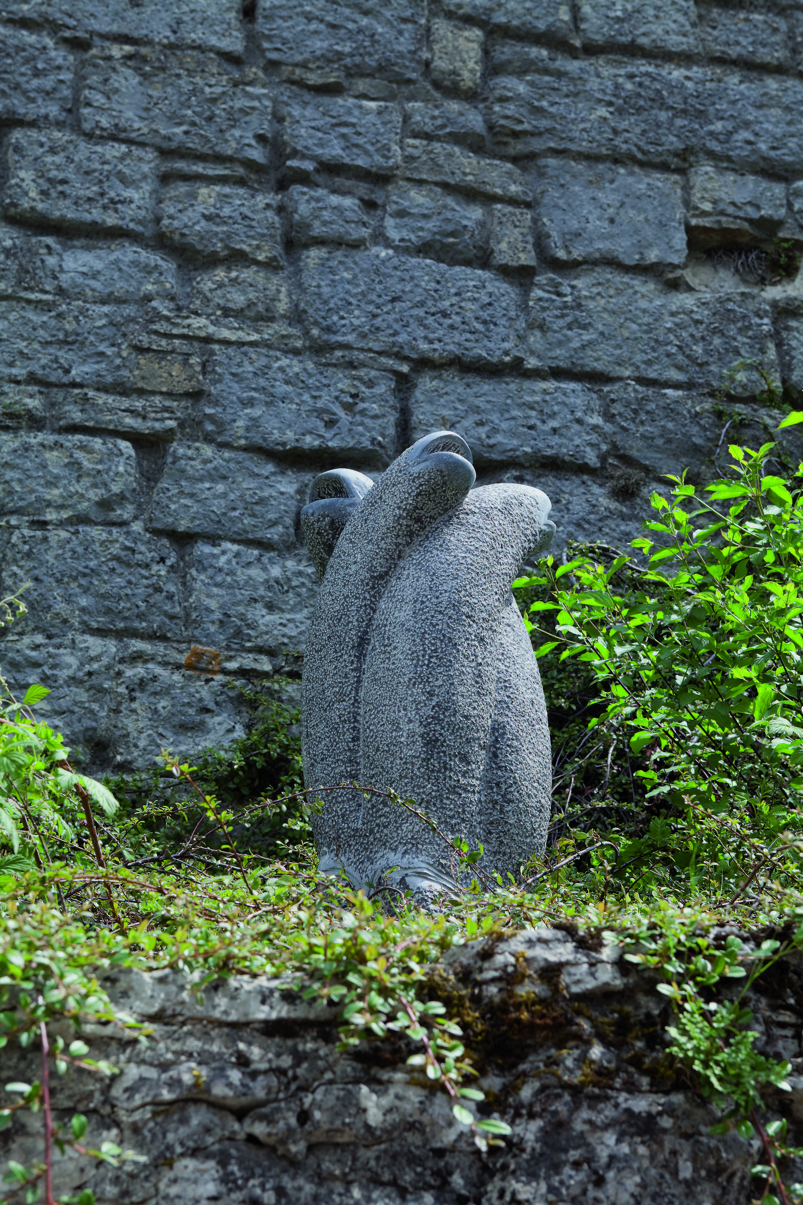 - Tentative pour s'envoler, sculpture, calcaire de Pouillenay et béton, Parc de l'Ile heureuse, La-Tour-de-Peilz