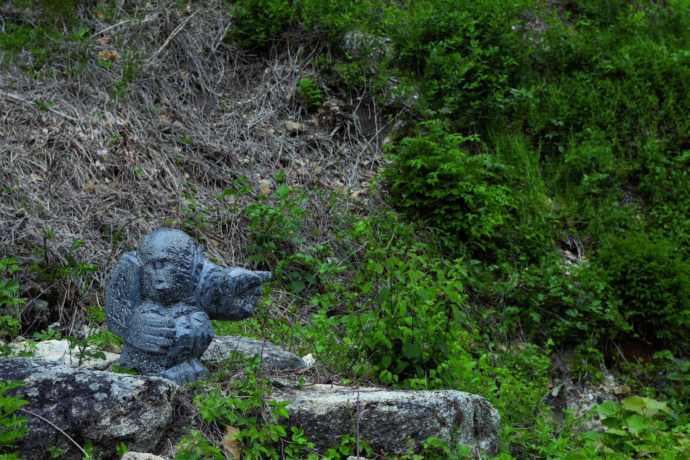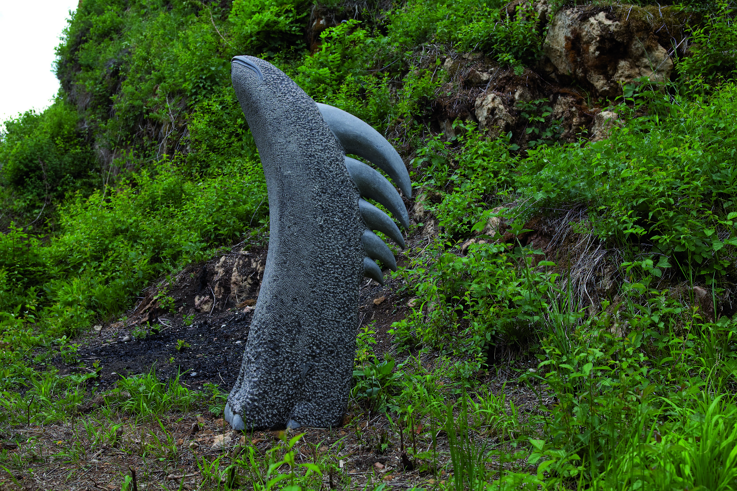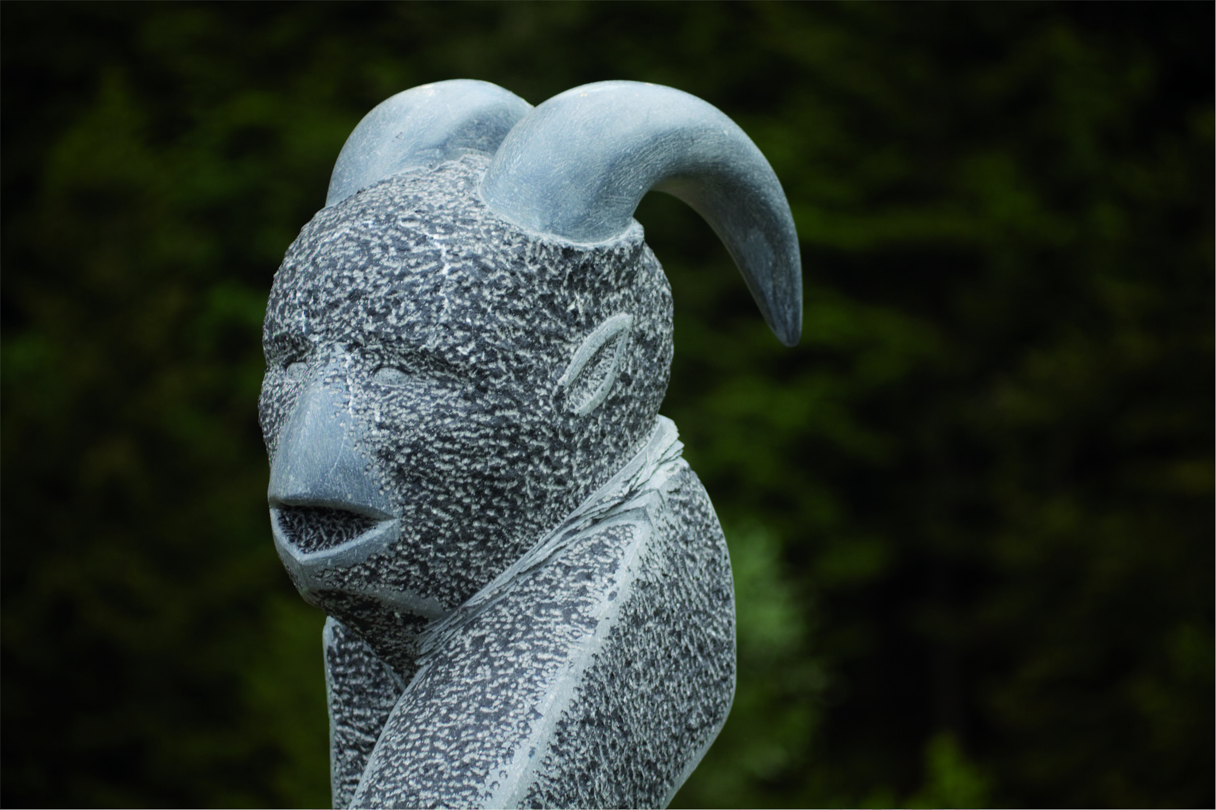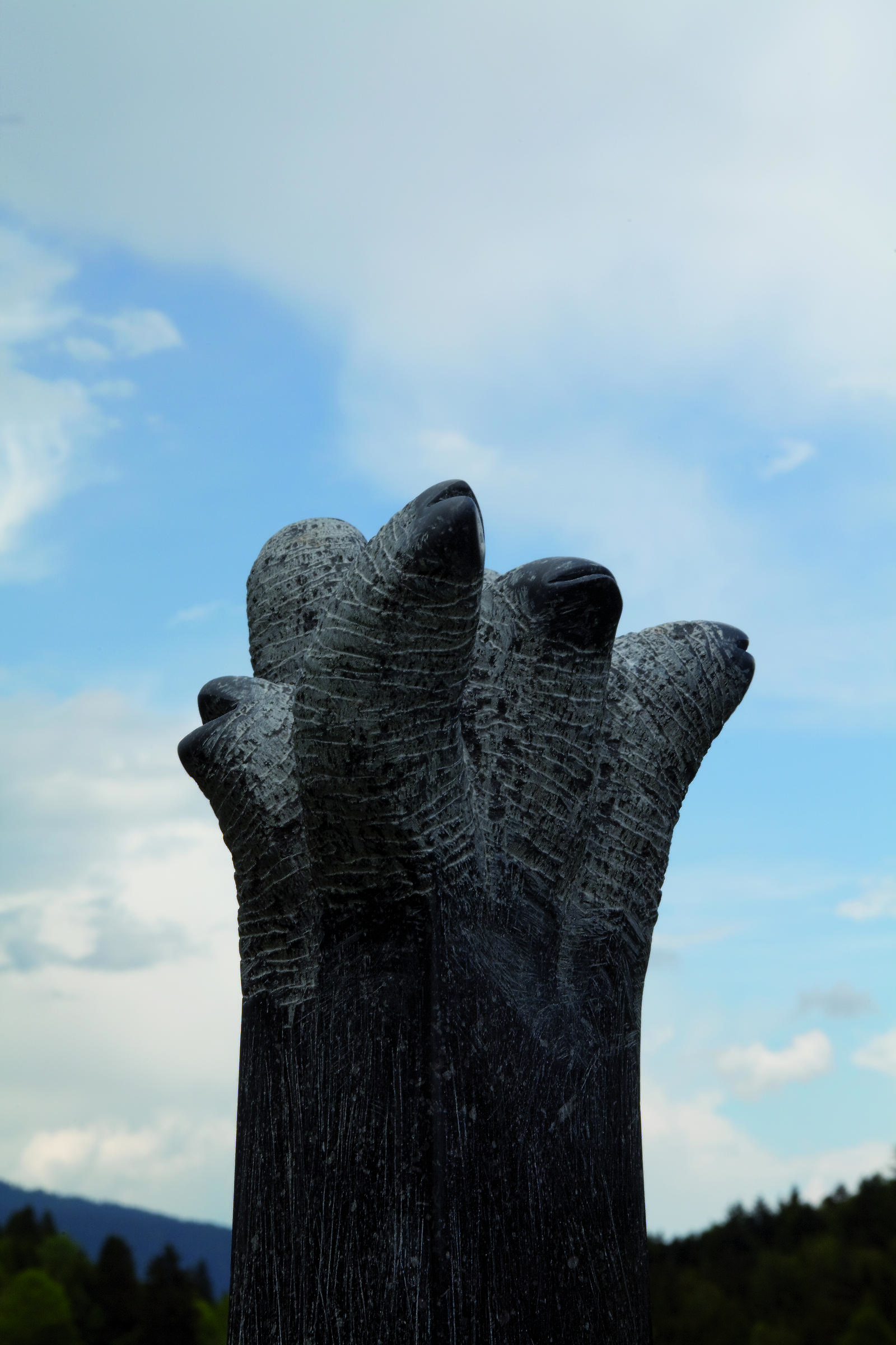 - Tentative pour s'envoler, sculpture, calcaire de Pouillenay et béton, Parc de l'Ile heureuse, La-Tour-de-Peilz