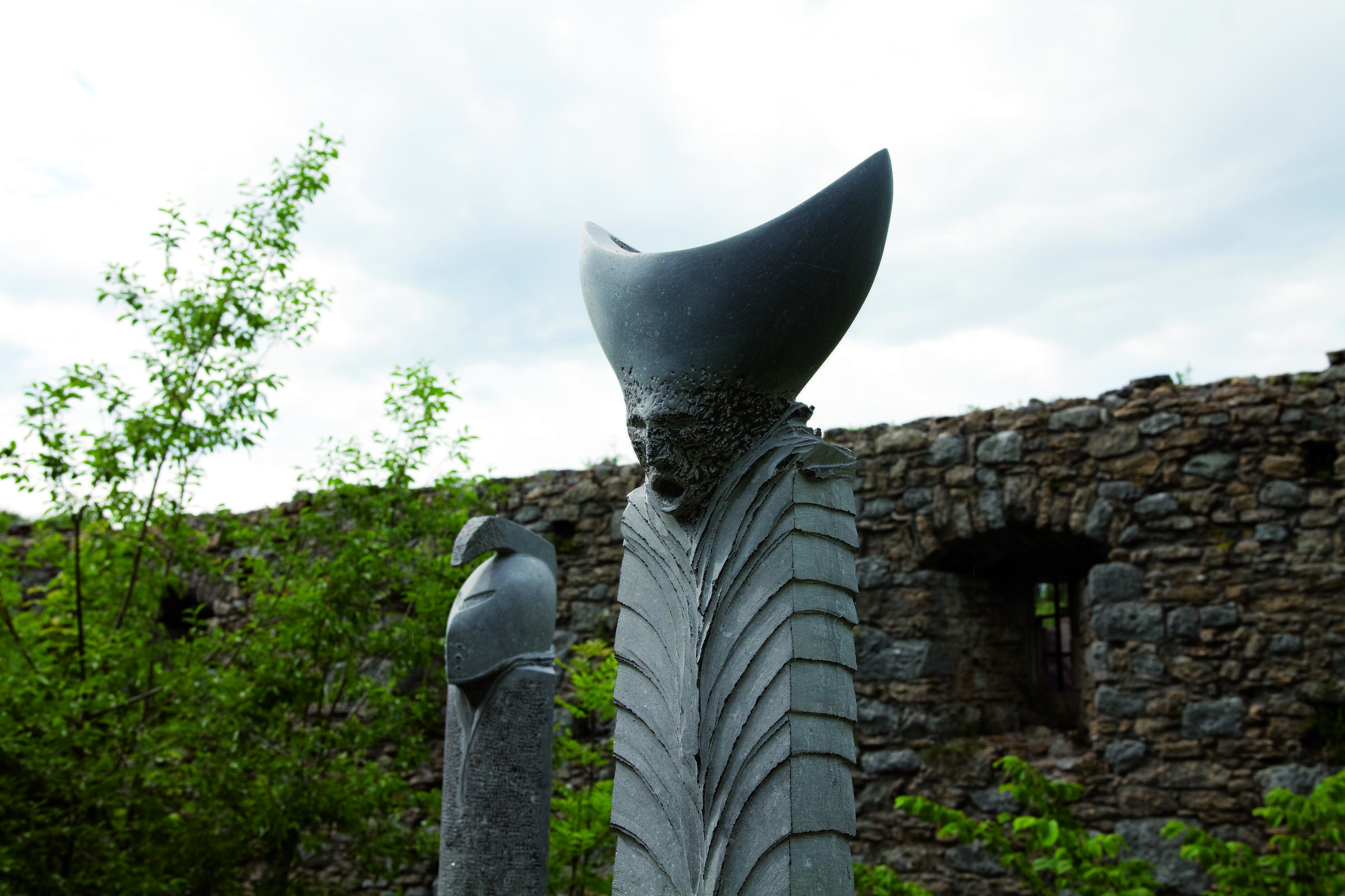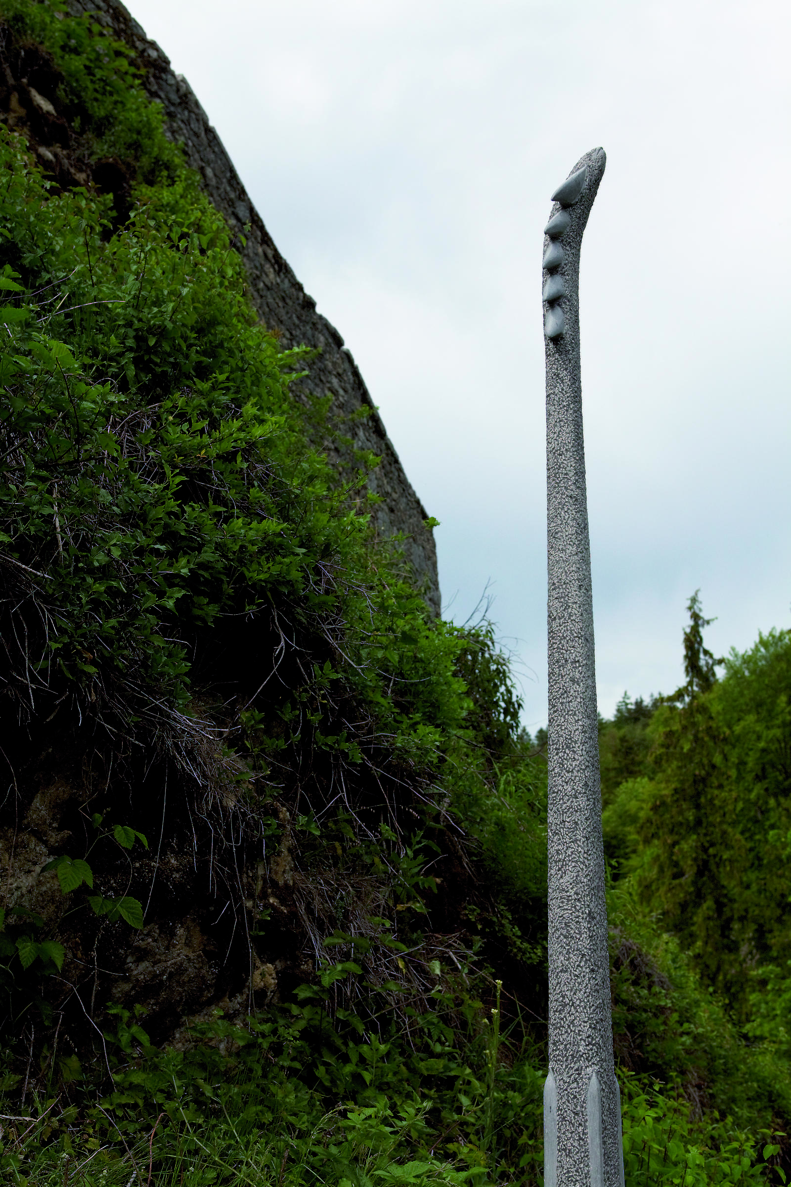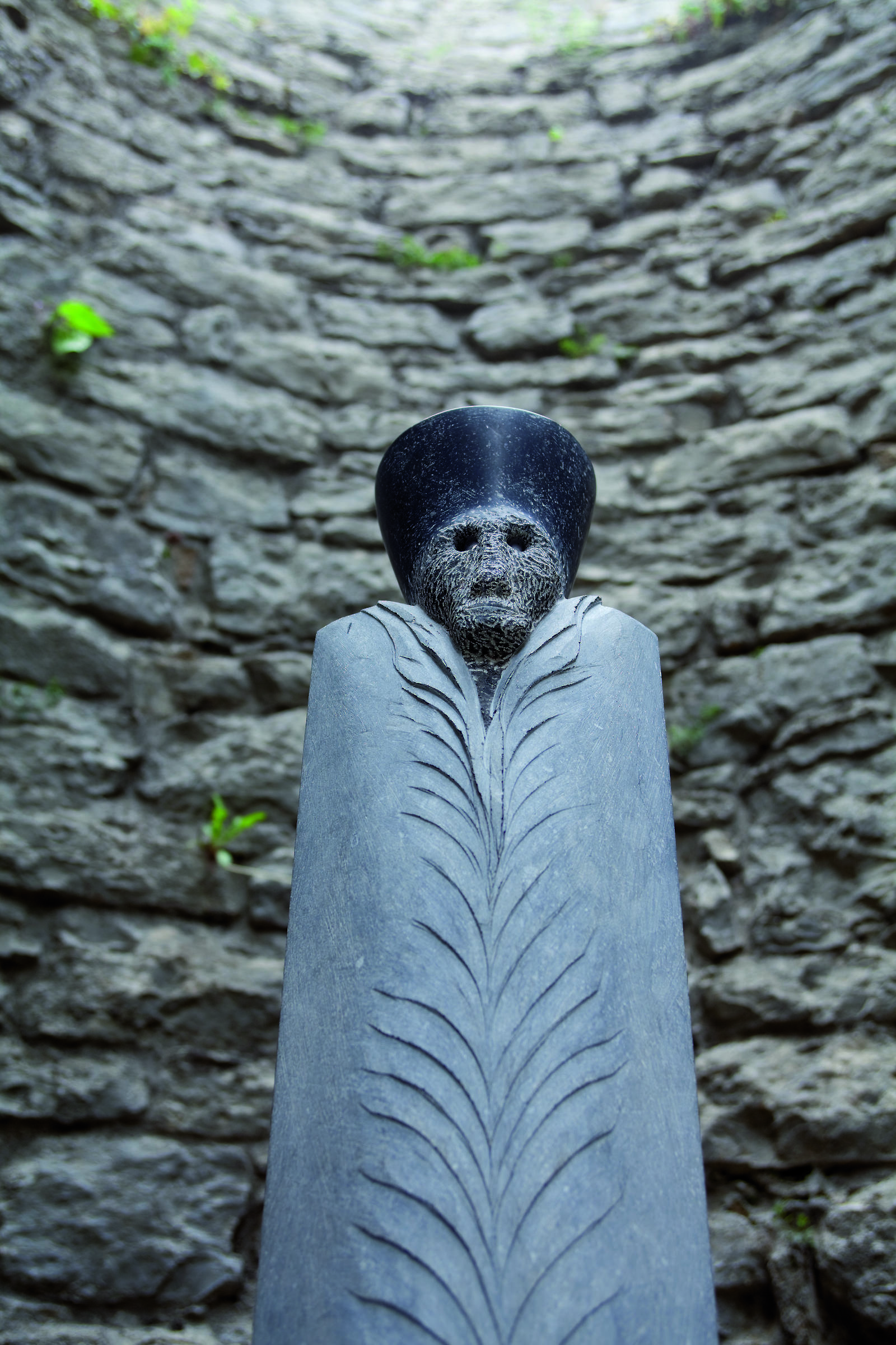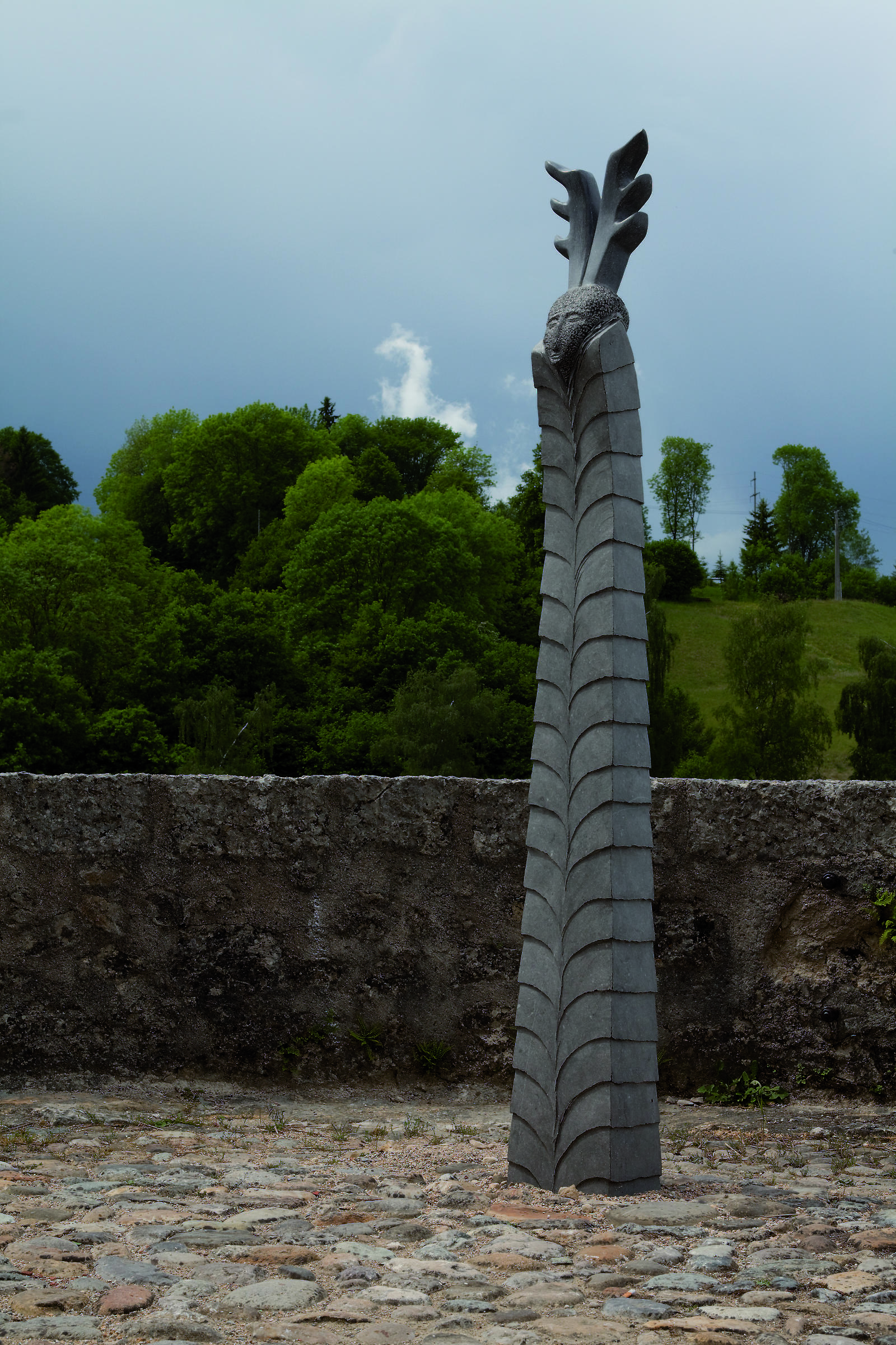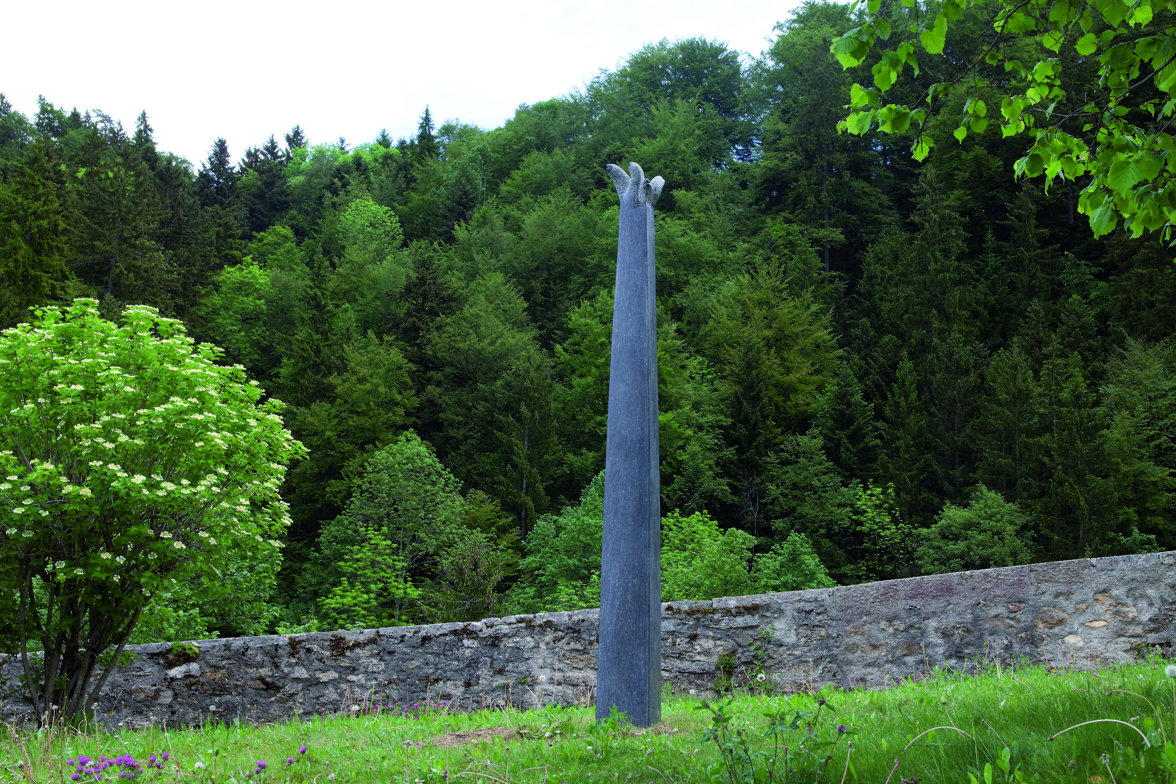 - Stèle aux ailes de corne, sculpture, pierre de Soignies, Banque Cantonale Vaudoise, Yverdon-les-Bains