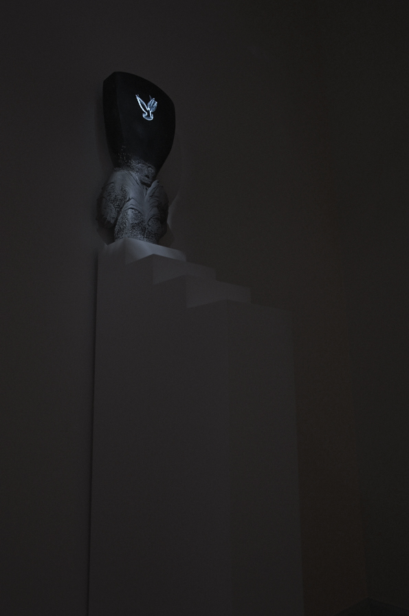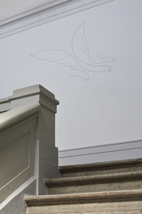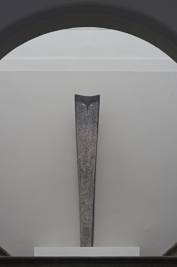 - Stèle aux ailes de corne, sculpture, pierre de Soignies, Banque Cantonale Vaudoise, Yverdon-les-Bains