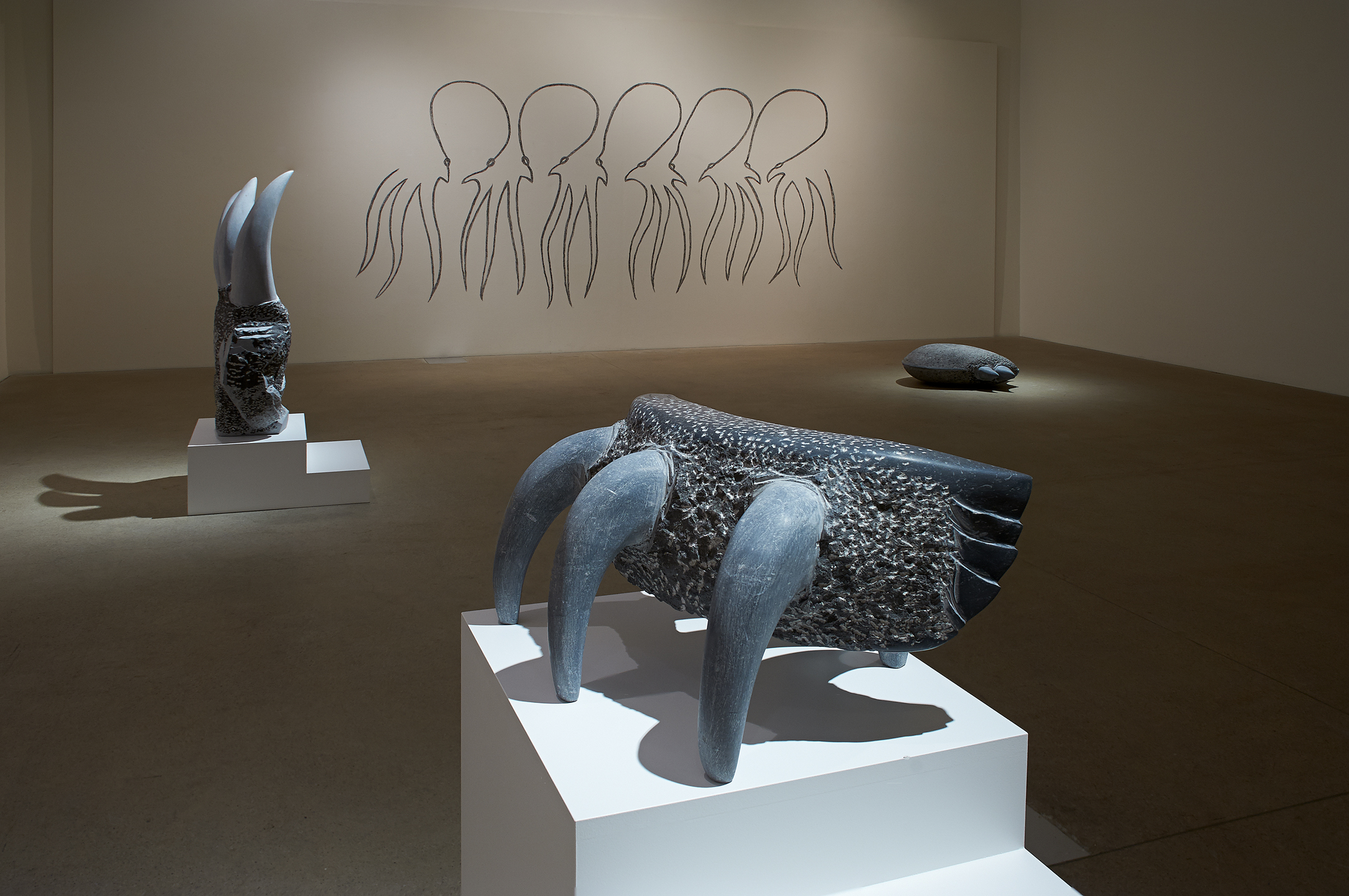 Incarnés depuis des décennies dans la pierre en taille directe, ils sortent maintenant de leurs carnets de croquis pour devenir dessins à part entière, se mettent à bouger dans des courts métrages d'animation ou en boucles projetées sur les oeuvres.