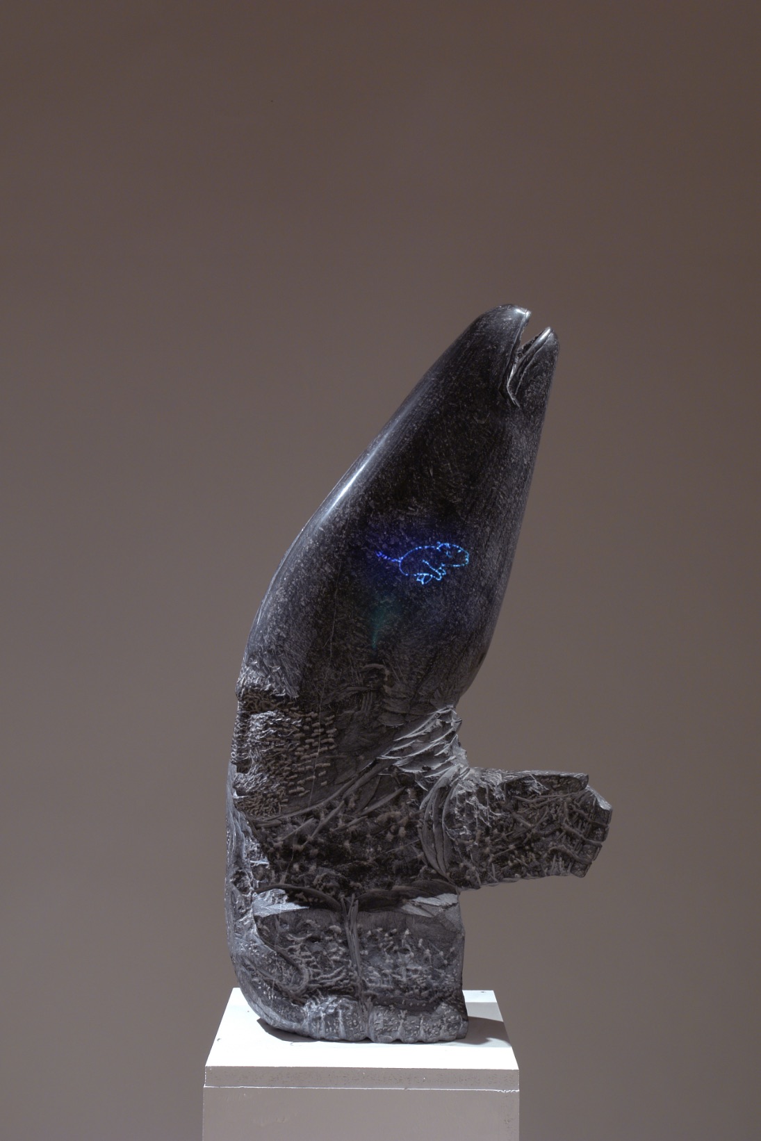 - Chien de lune, sculpture, basalte de Suède, Bâtiment administratif route de Berne 46, Lausanne
