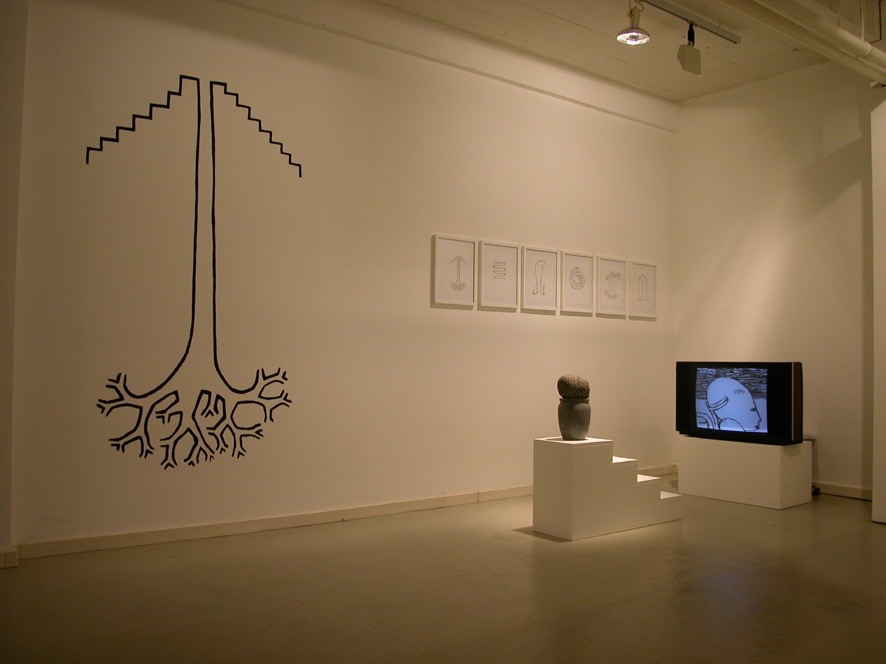 Sculptures regardant comme Janus dans deux directions, dessins à double lecture, projections sont autant de reflets des doutes et des interrogations de l'artiste face à une société en pleine mutation. Avec un certain humour pour prendre de la distance.