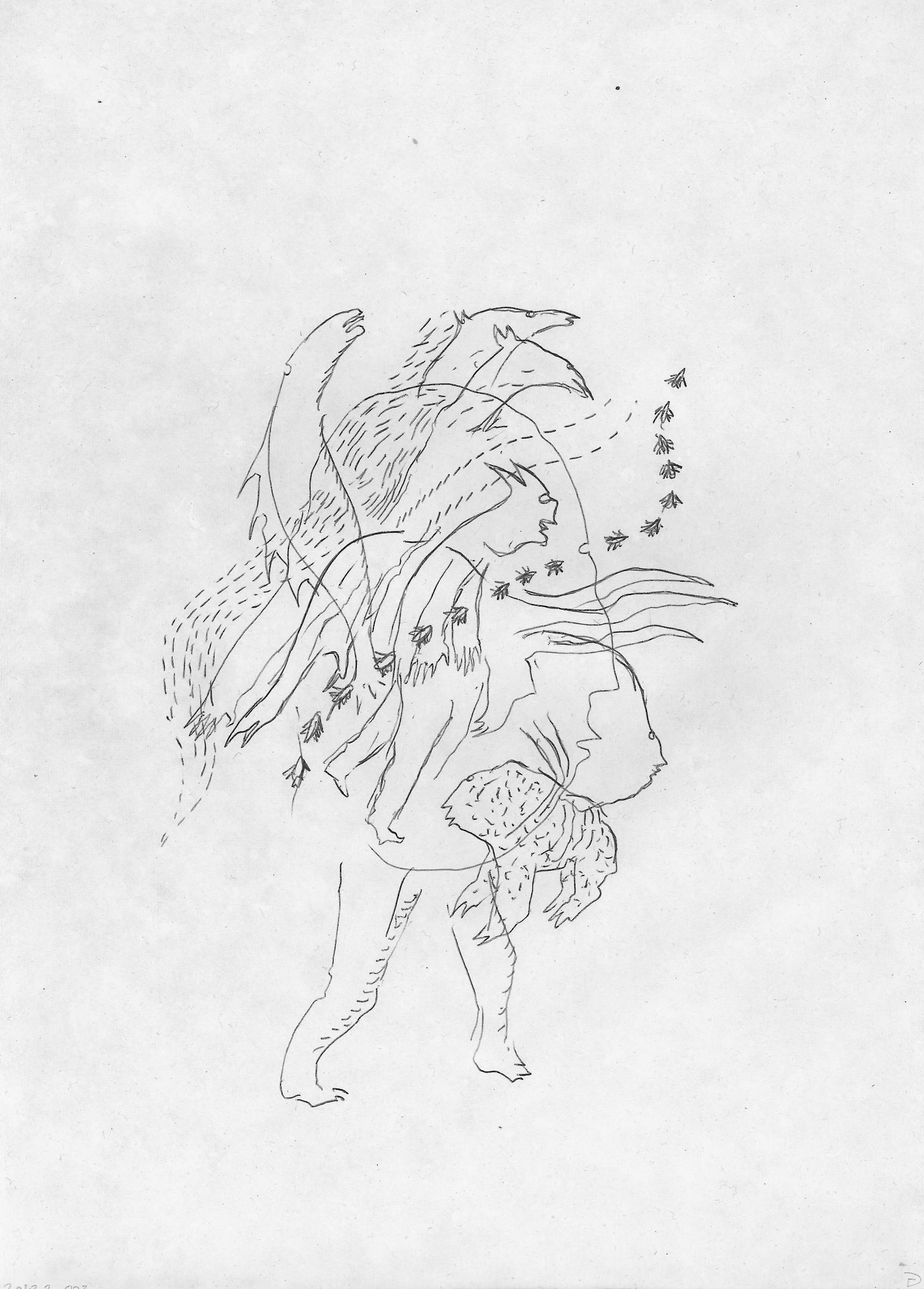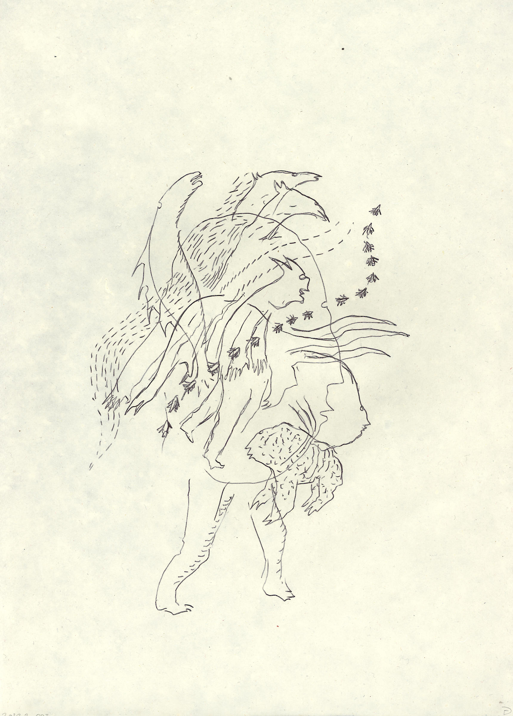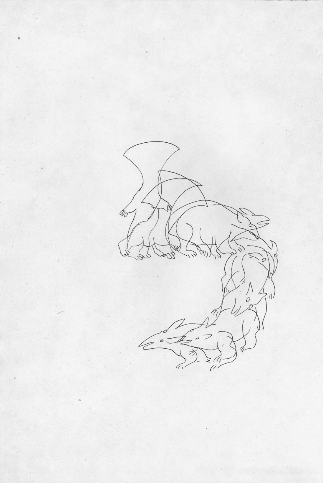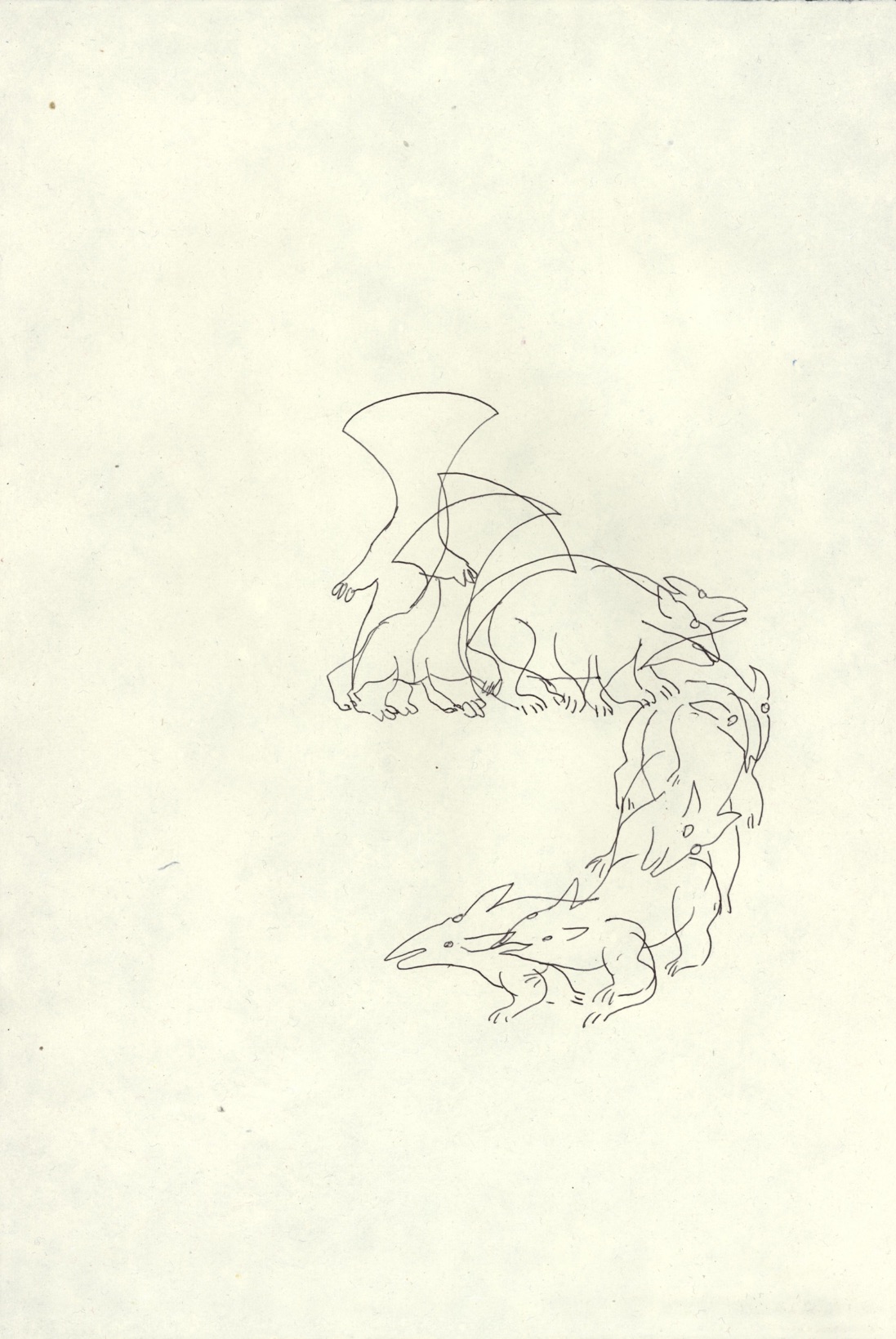 La Course, le Saut, dessins, avec un poème de Jacques-Pierre Amée, L’Hypoténuse, Saint-Etienne-les-Orgues (F), 1998