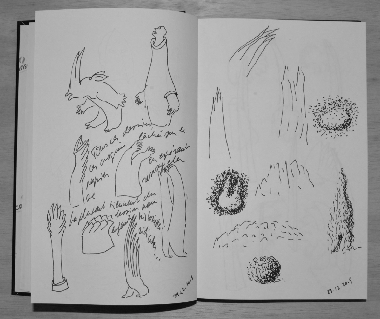 Incarnés depuis des décennies dans la pierre en taille directe, ils sortent maintenant de leurs carnets de croquis pour devenir dessins à part entière, se mettent à bouger dans des courts métrages d'animation ou en boucles projetées sur les oeuvres.