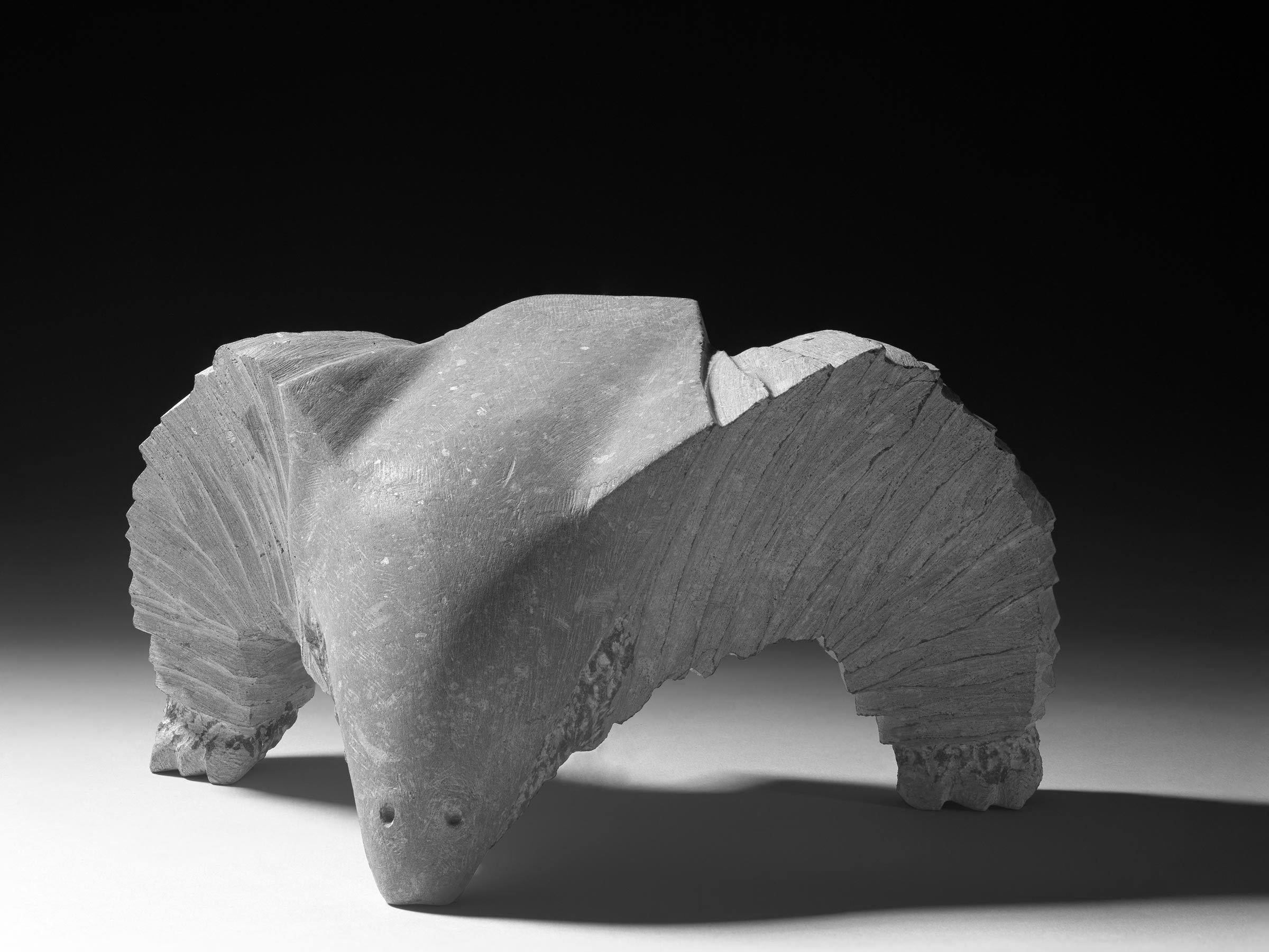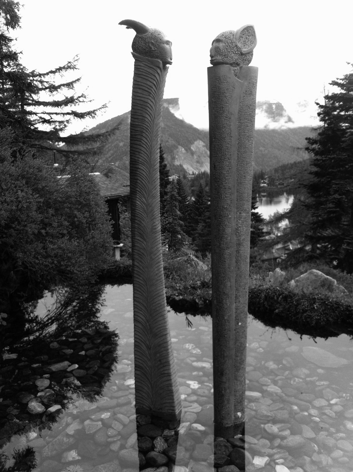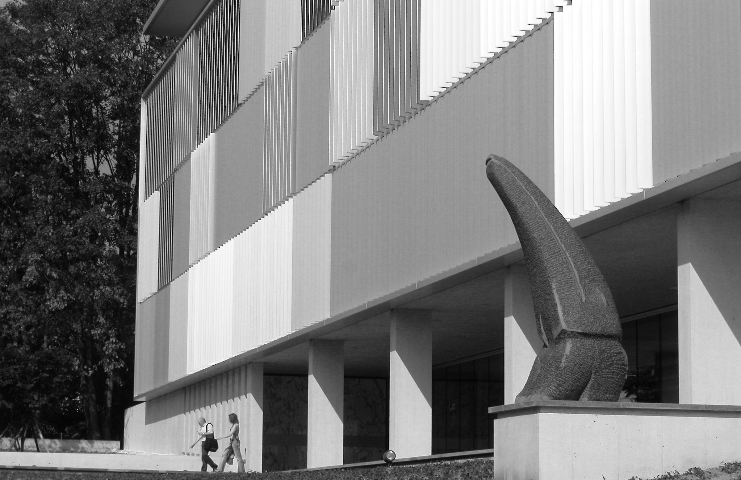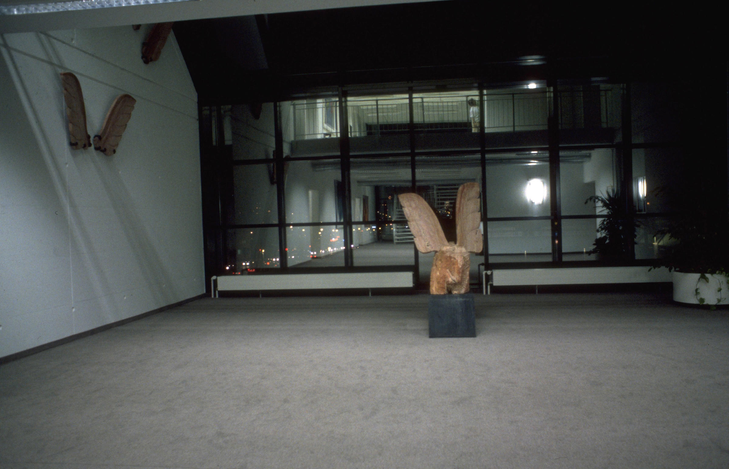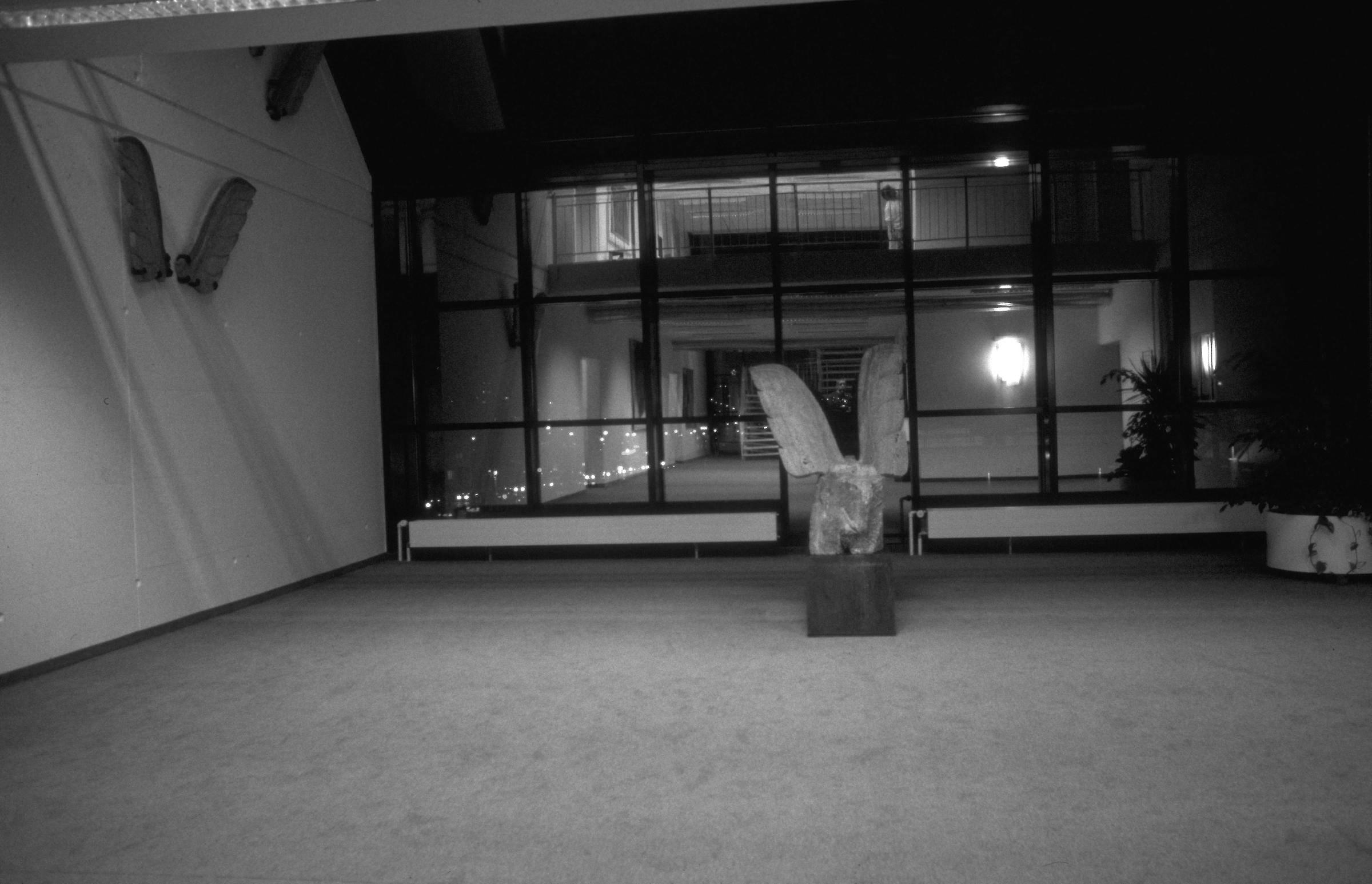 - Stèle aux ailes de corne, sculpture, pierre de Soignies, Banque Cantonale Vaudoise, Yverdon-les-Bains