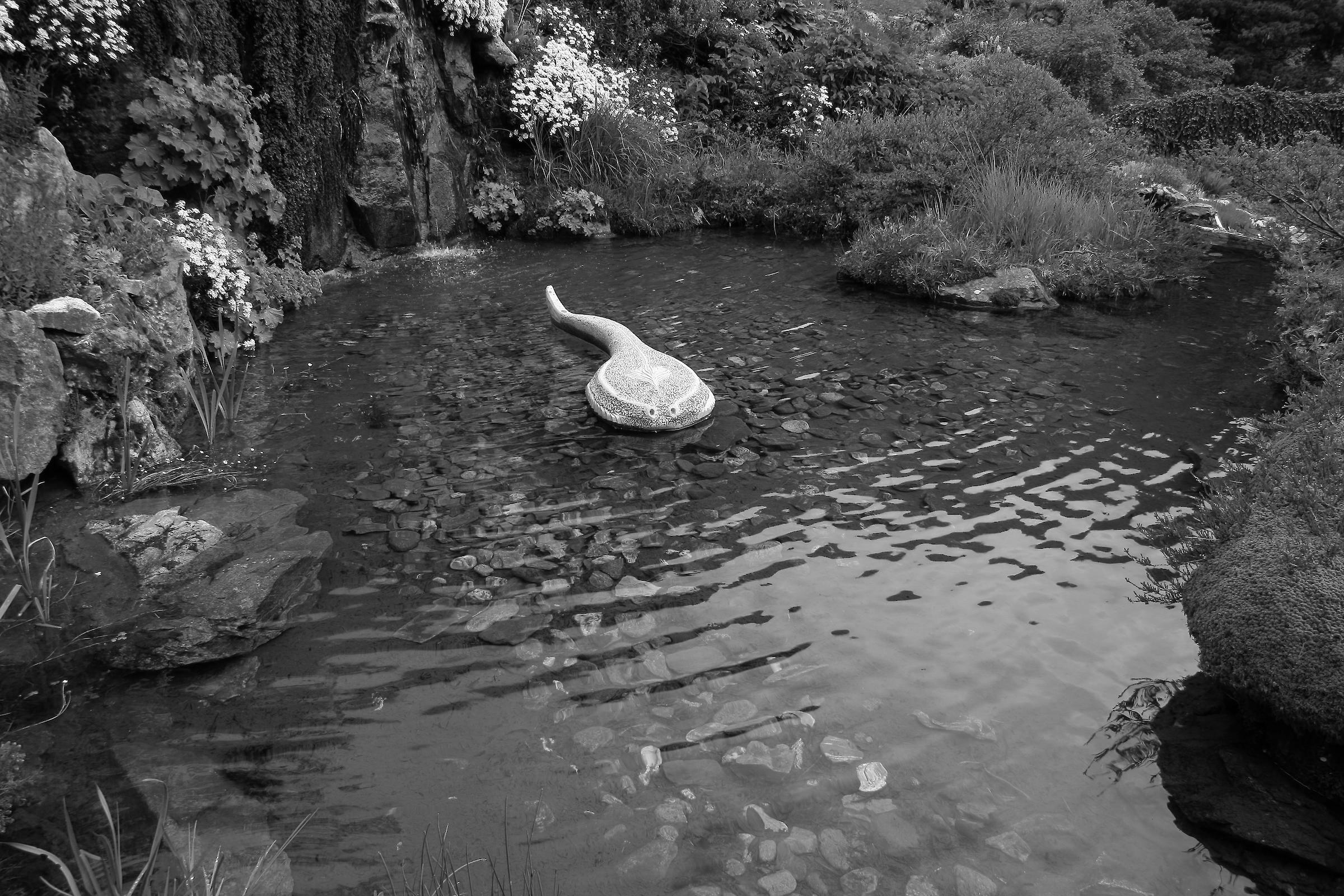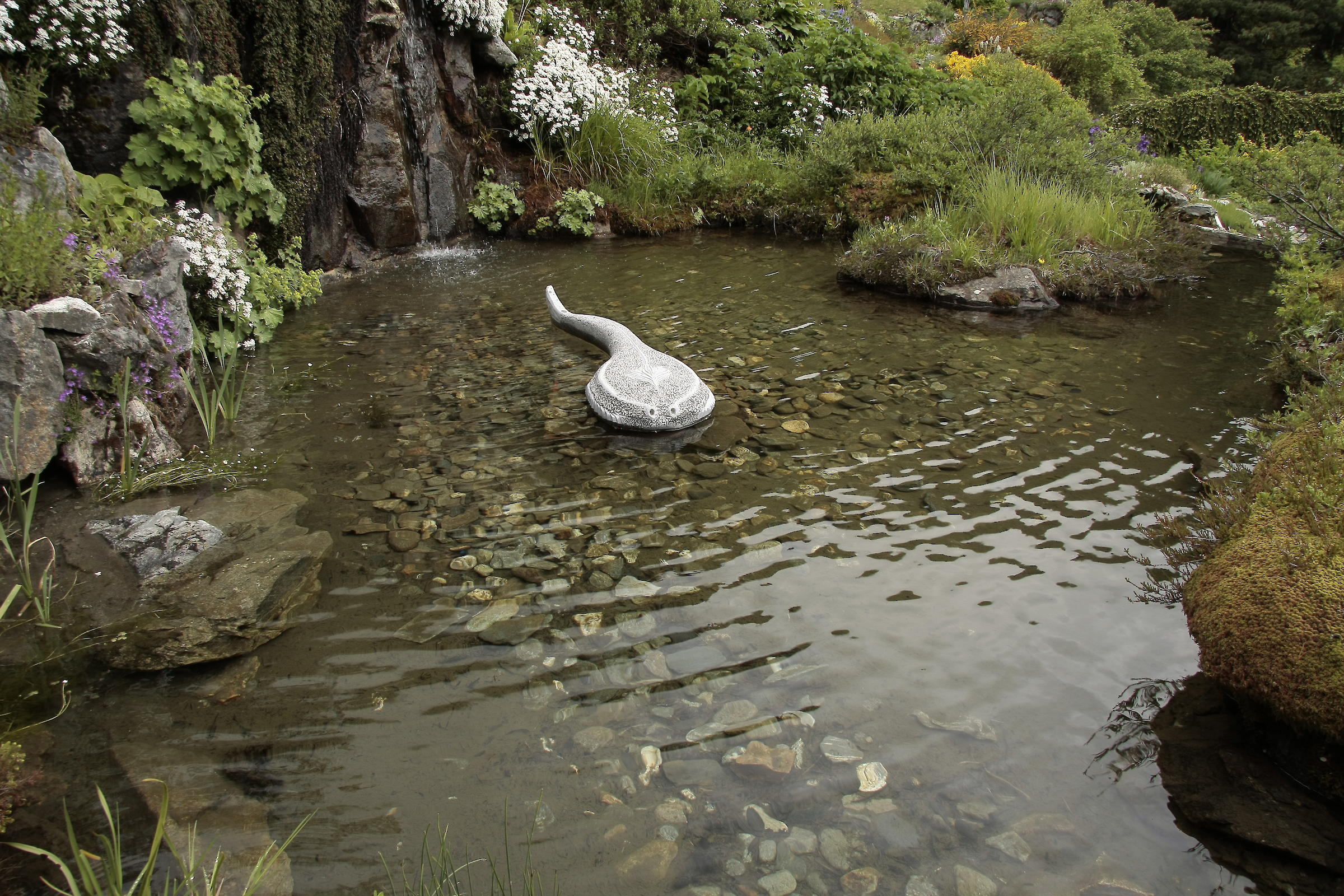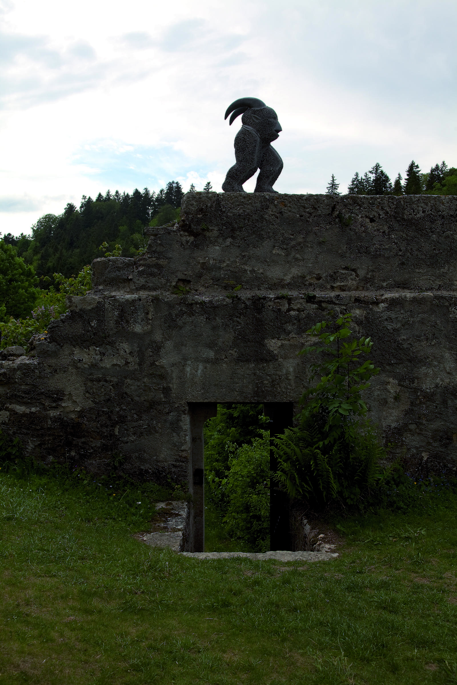 - Tentative pour s'envoler, sculpture, calcaire de Pouillenay et béton, Parc de l'Ile heureuse, La-Tour-de-Peilz