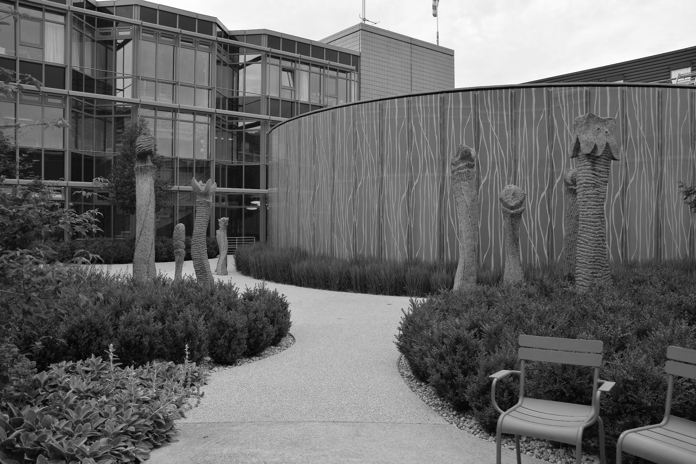 - Jardin de rêve, sculptures et environnement, pierre de Soignies, pierre du Jura, sable, Medtronic Europe, Tolochenaz/Morges