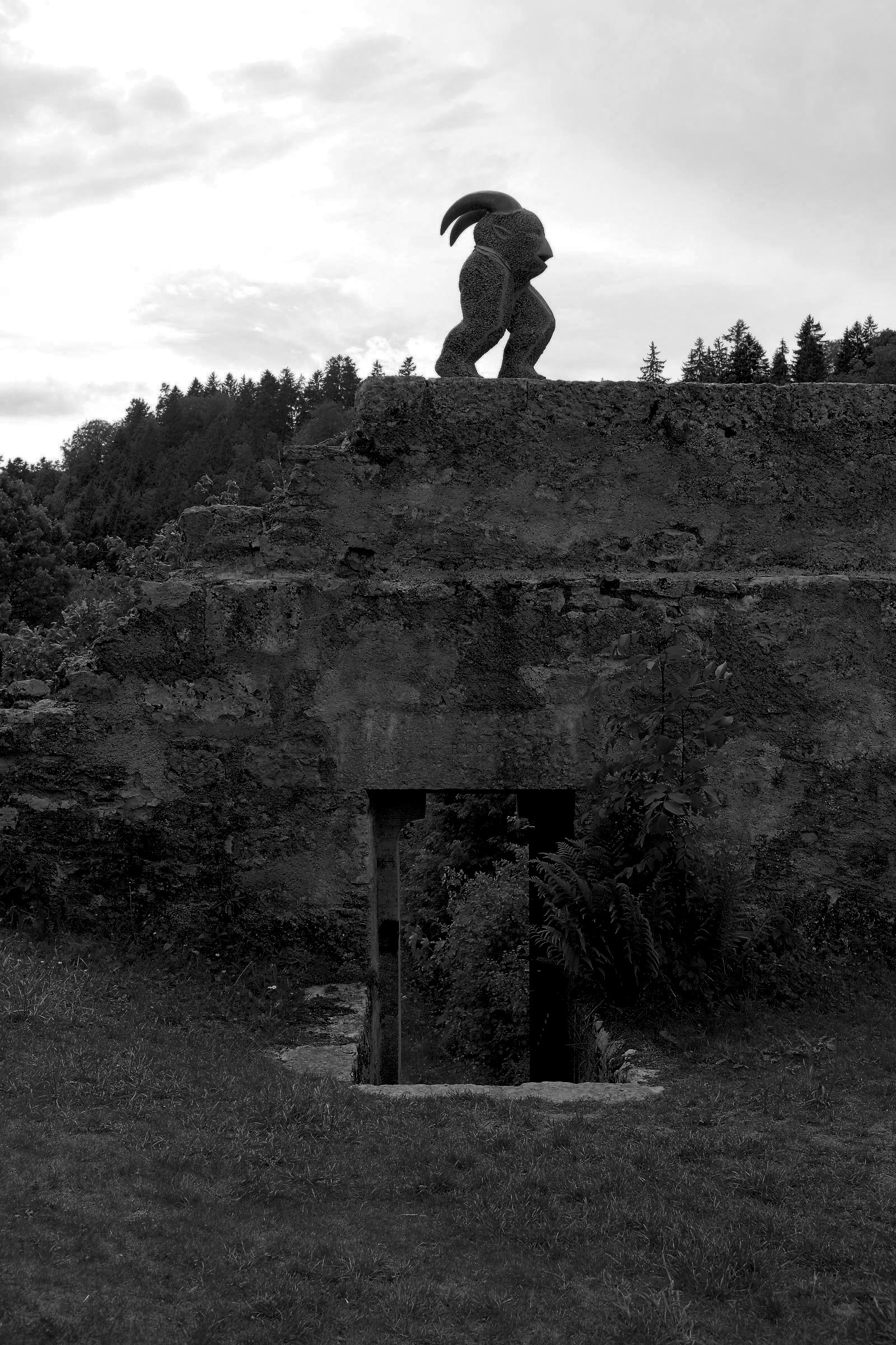 - Centaure/homme-chien: dialogue, sculpture, pierre de Soignies, Caisse d'Epargne et de Prévoyance d'Yverdon (CEPY), Yverdon-les-Bains (déplacée)