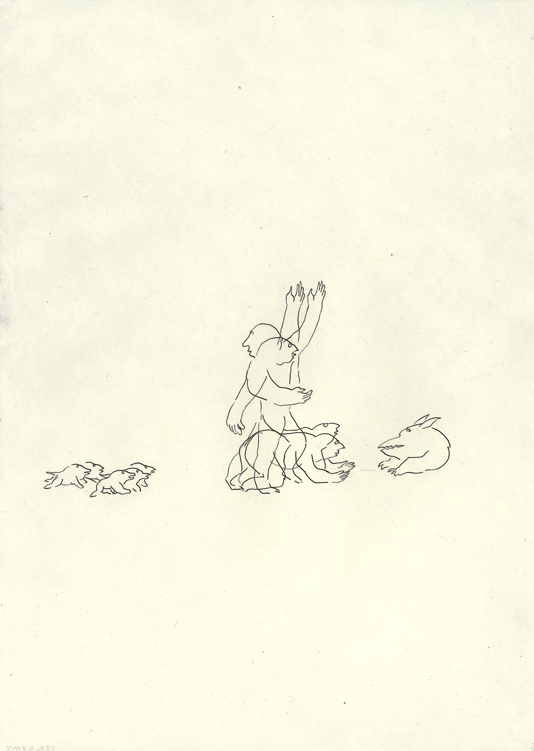 • La Course, le Saut, dessins, avec un poème de Jacques-Pierre Amée, L’Hypoténuse, Saint-Etienne-les-Orgues (F), 1998