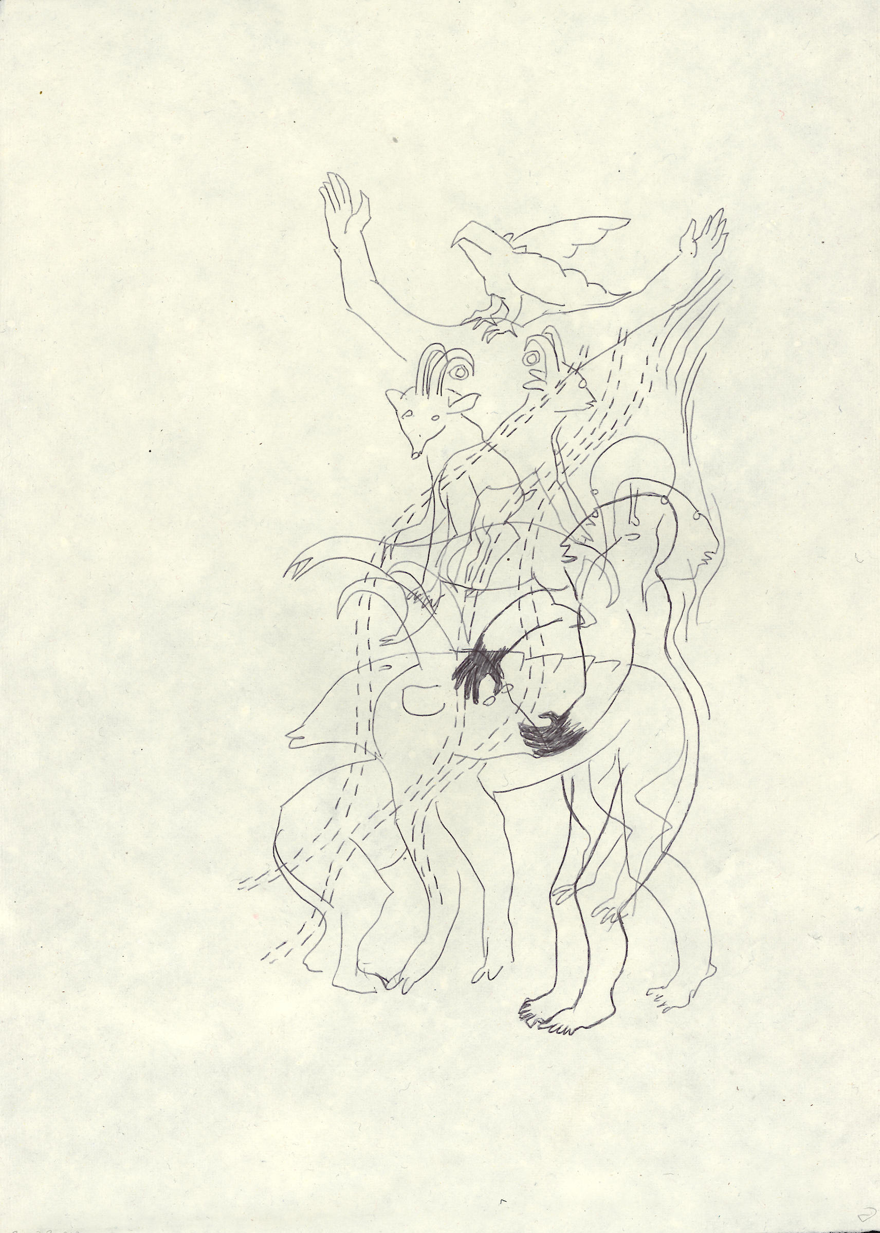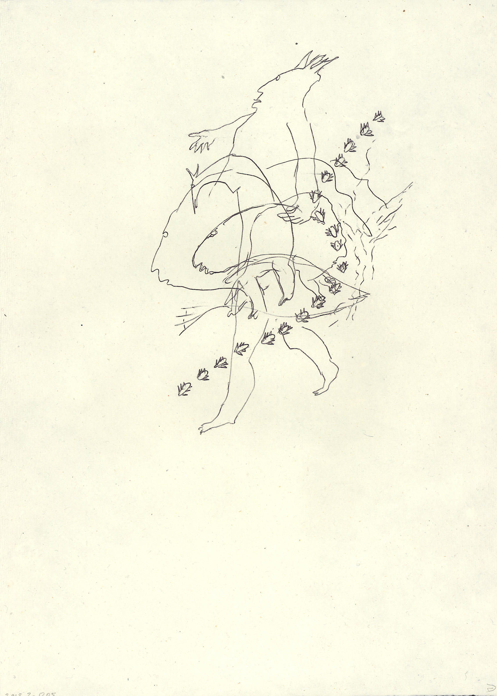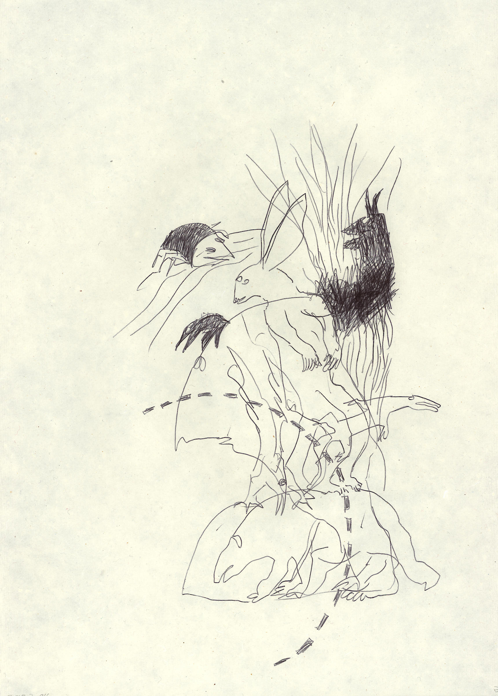 La Course, le Saut, dessins, avec un poème de Jacques-Pierre Amée, L’Hypoténuse, Saint-Etienne-les-Orgues (F), 1998