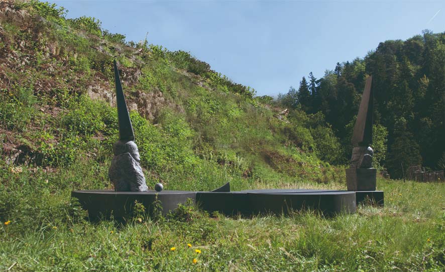 - Jardin de rêve, sculptures et environnement, pierre de Soignies, pierre du Jura, sable, Medtronic Europe, Tolochenaz/Morges