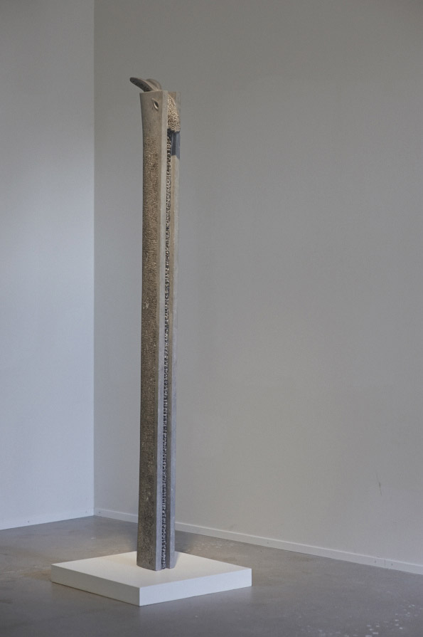 - Stèle aux ailes de corne, sculpture, pierre de Soignies, Banque Cantonale Vaudoise, Yverdon-les-Bains