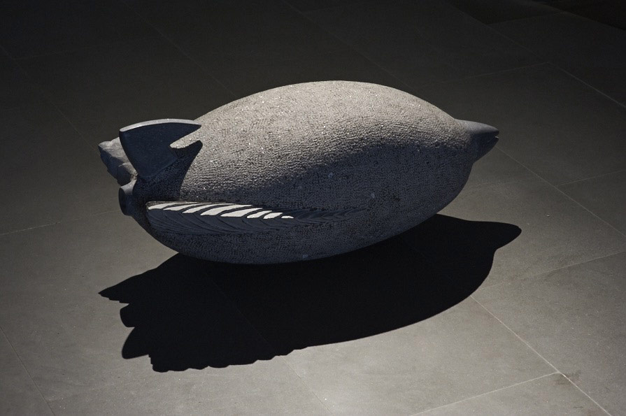 - Tentative pour s'envoler, sculpture, calcaire de Pouillenay et béton, Parc de l'Ile heureuse, La-Tour-de-Peilz
