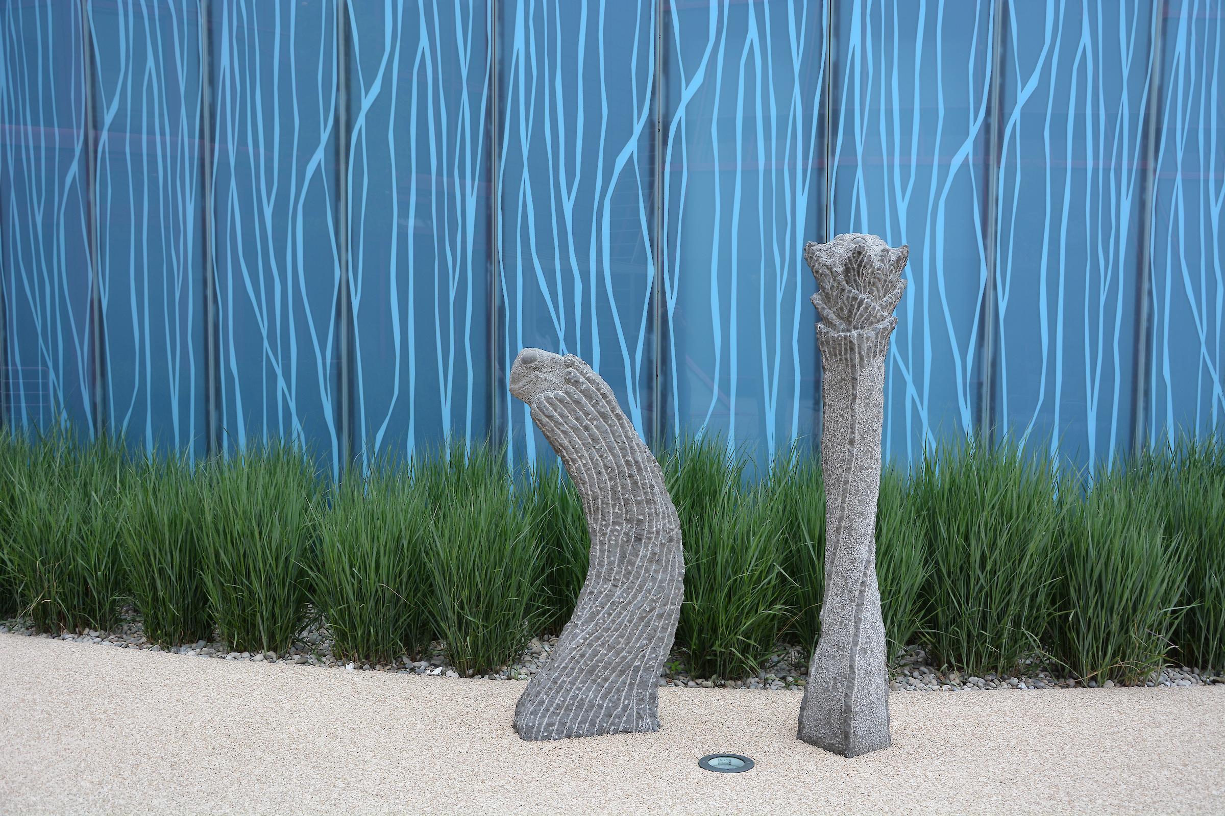- Jardin de rêve, sculptures et environnement, pierre de Soignies, pierre du Jura, sable, Medtronic Europe, Tolochenaz/Morges