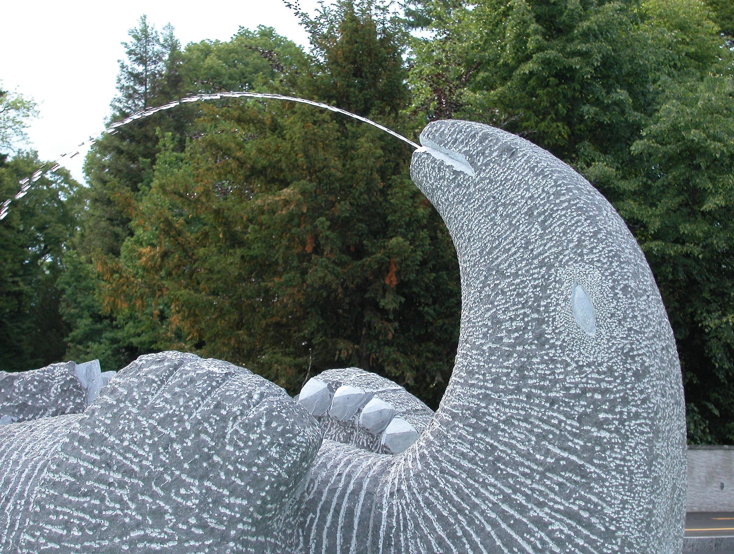 • Le grand Baigneur, sculpture/fontaine, pierre de Soignies, giratoire de Floreyres, Société des Bains, Yverdon-les-Bains
