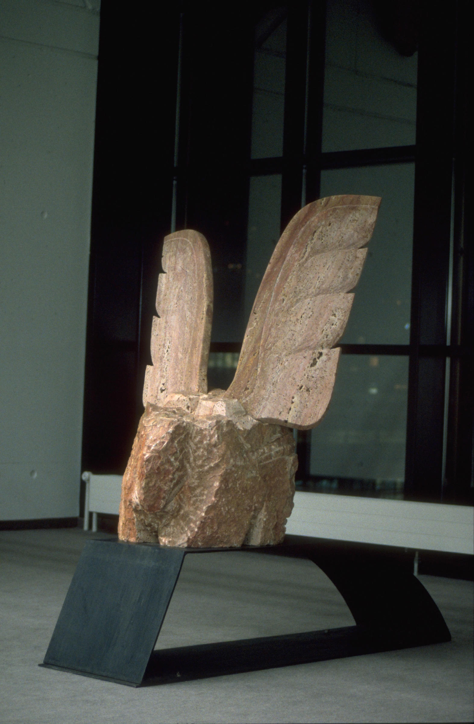 • Stèle aux ailes de corne, sculpture, pierre de Soignies, Banque Cantonale Vaudoise, Yverdon-les-Bains